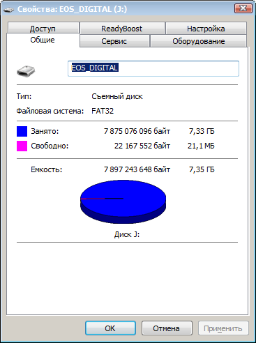 Вот так выглядело окно свойств флешки на 16 Гб. Доступно всего 8 Гб!